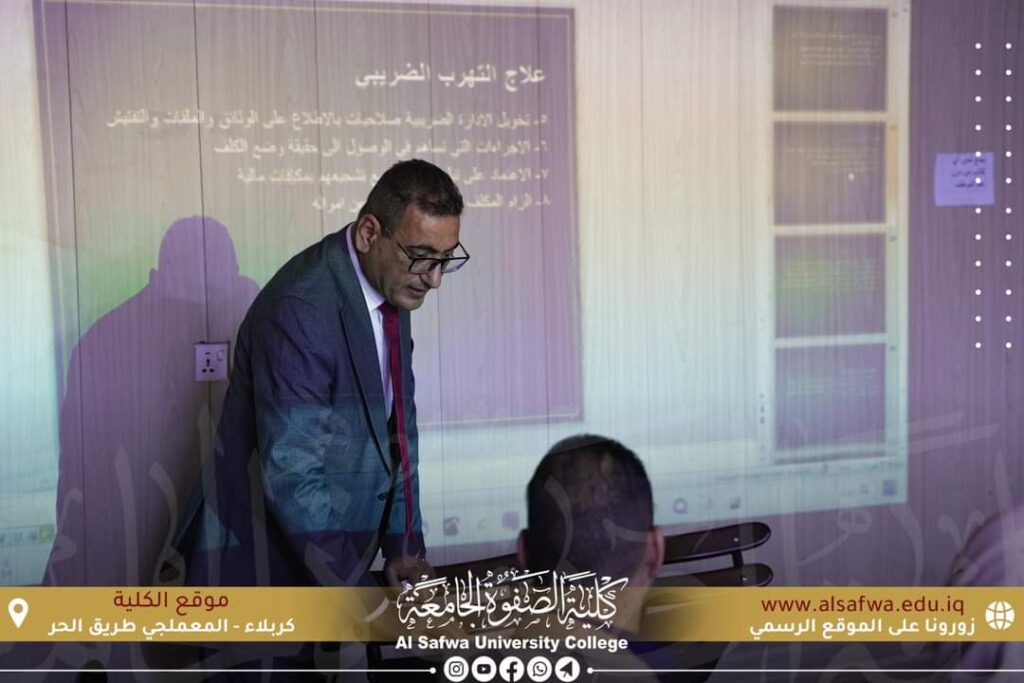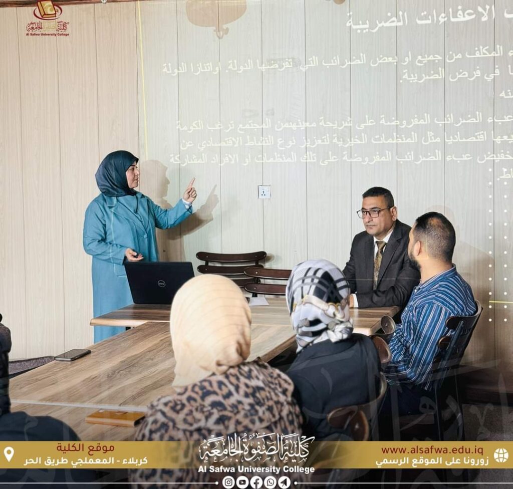 اقامت شعبة التعليم المستمر في كلية الصفوة الجامعة بالتعاون مع قسم المحاسبة دورة تدريبية حضورية لمدة ثلاثة أيام في مكتبة الكلية بعنوان”الإعفاءات الضريبية وأثرها في الحد من ظاهرة التهرب الضريبي”